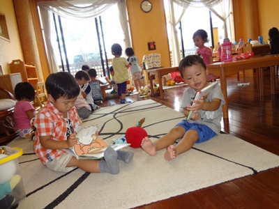 (朝はちょっぴり寂しくないてしまう子もいますが、すぐに笑顔になっていますよ)