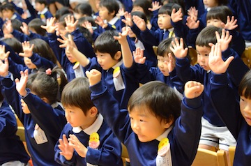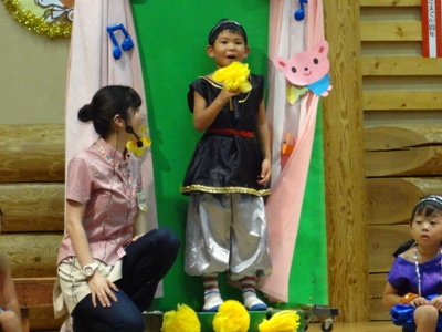 つぼみ、年少組は初めてのそうめん流しに少しドキドキの様子・・・