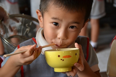 年中、年長組は箸を上手に使って取っていました(^^)v