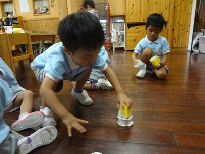 上手に飛ばせるように子ども同士で