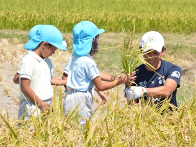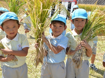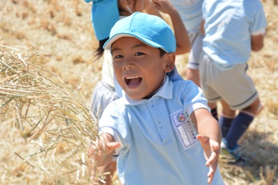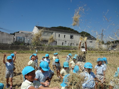 6月に稲を植え、今日の日を楽しみにしていた年長の子どもたち☆