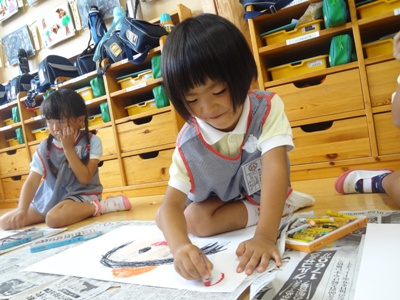 そして、今日は皆が頑張った運動会の絵を描きました\(^o^)/