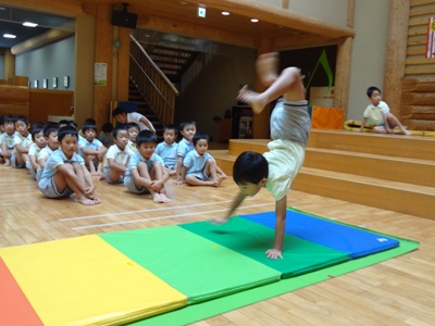 園長先生のお話もこんなにかっこよく聞けるんです(年少です♪)^m^