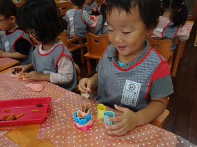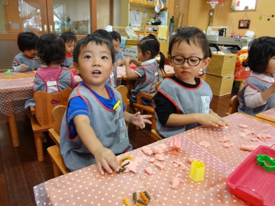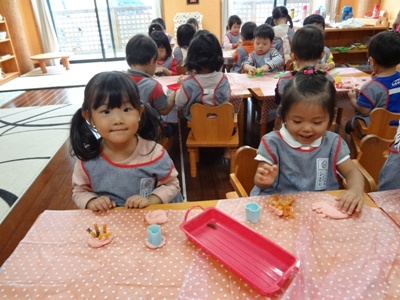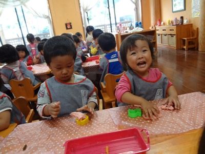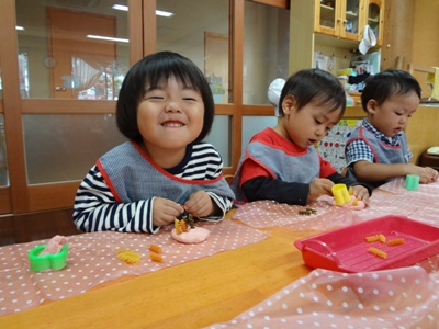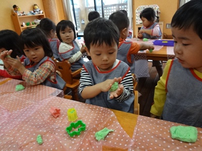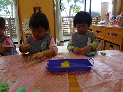 今日は、子どもも大好きな小麦粉粘土をしている様子をお伝えします(*^^)v