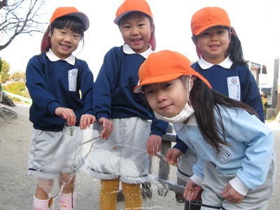昨日の雪とはまた違う感触、冷たさを感じ楽しんでいました♪