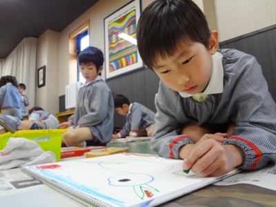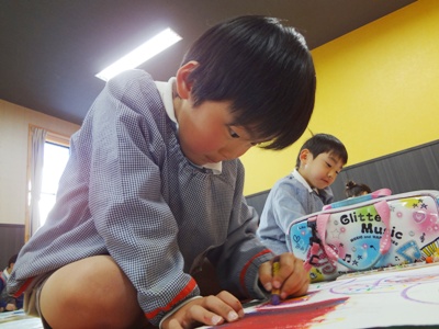 おもいっきりパスや絵の具を使って描いていましたよ\(^o^)/