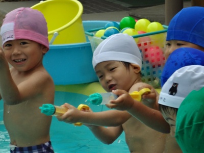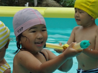 友達と水を掛け合って本当に楽しそうに遊んでいましたよ(*^_^*)