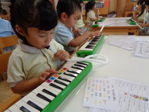 ドレミで大きな声で歌い、鍵盤で弾けるように