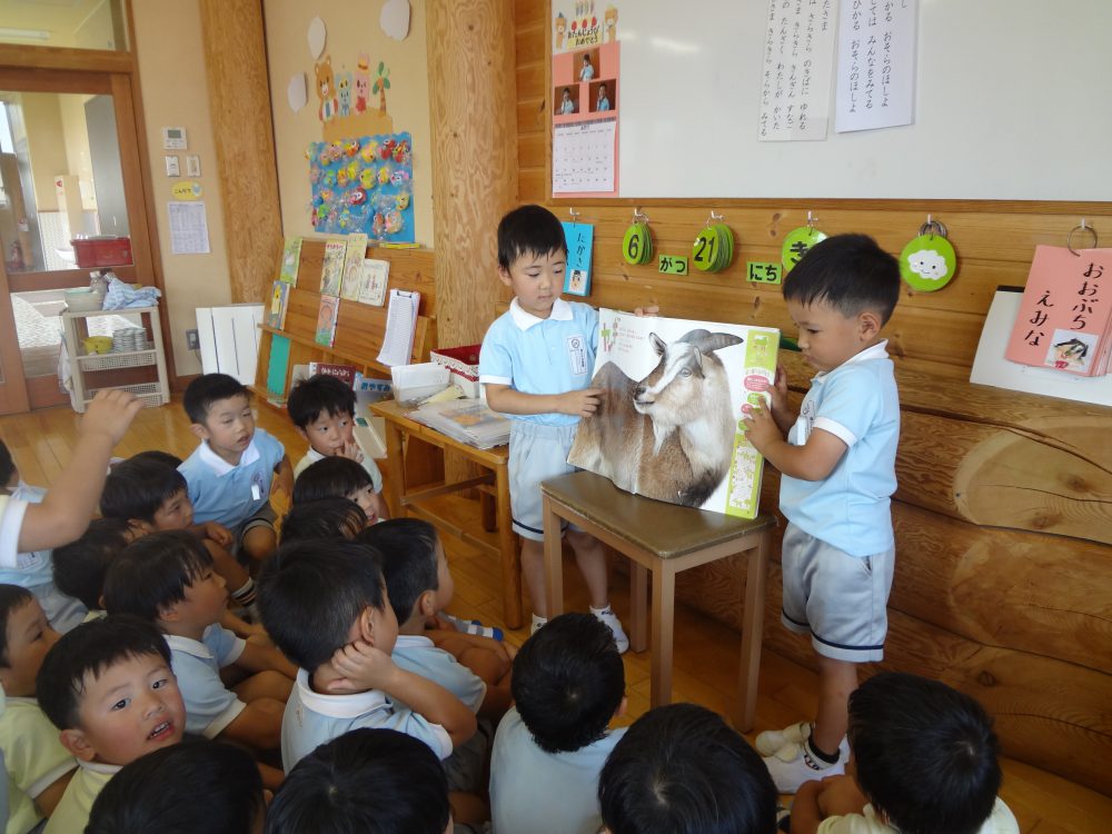 いつもは教師が読み聞かせる絵本ですが、