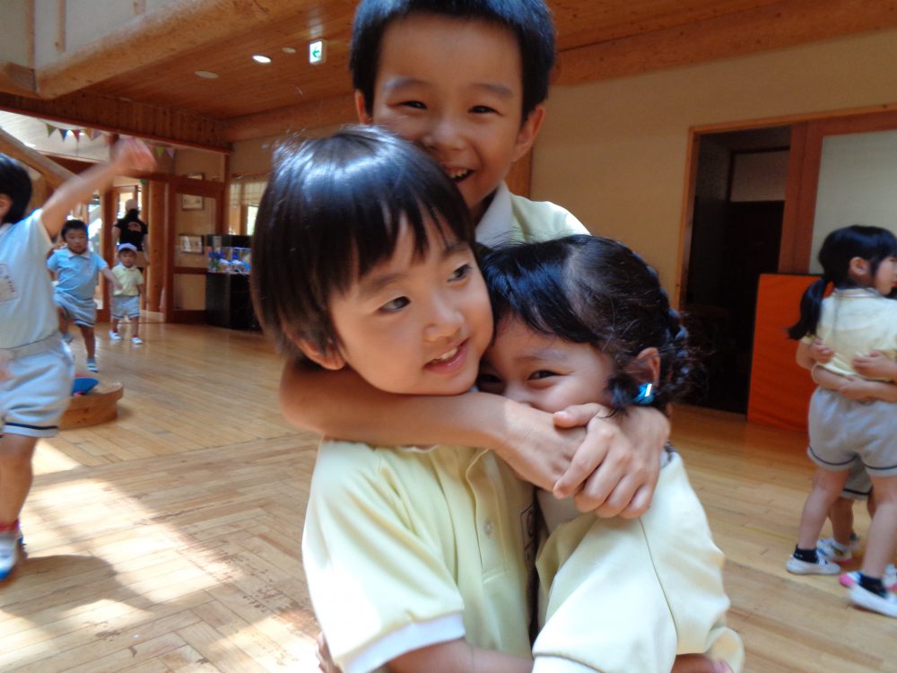 活動の最後にはペアになった友達と「また、遊ぼうね!」のぎゅ~ ♡