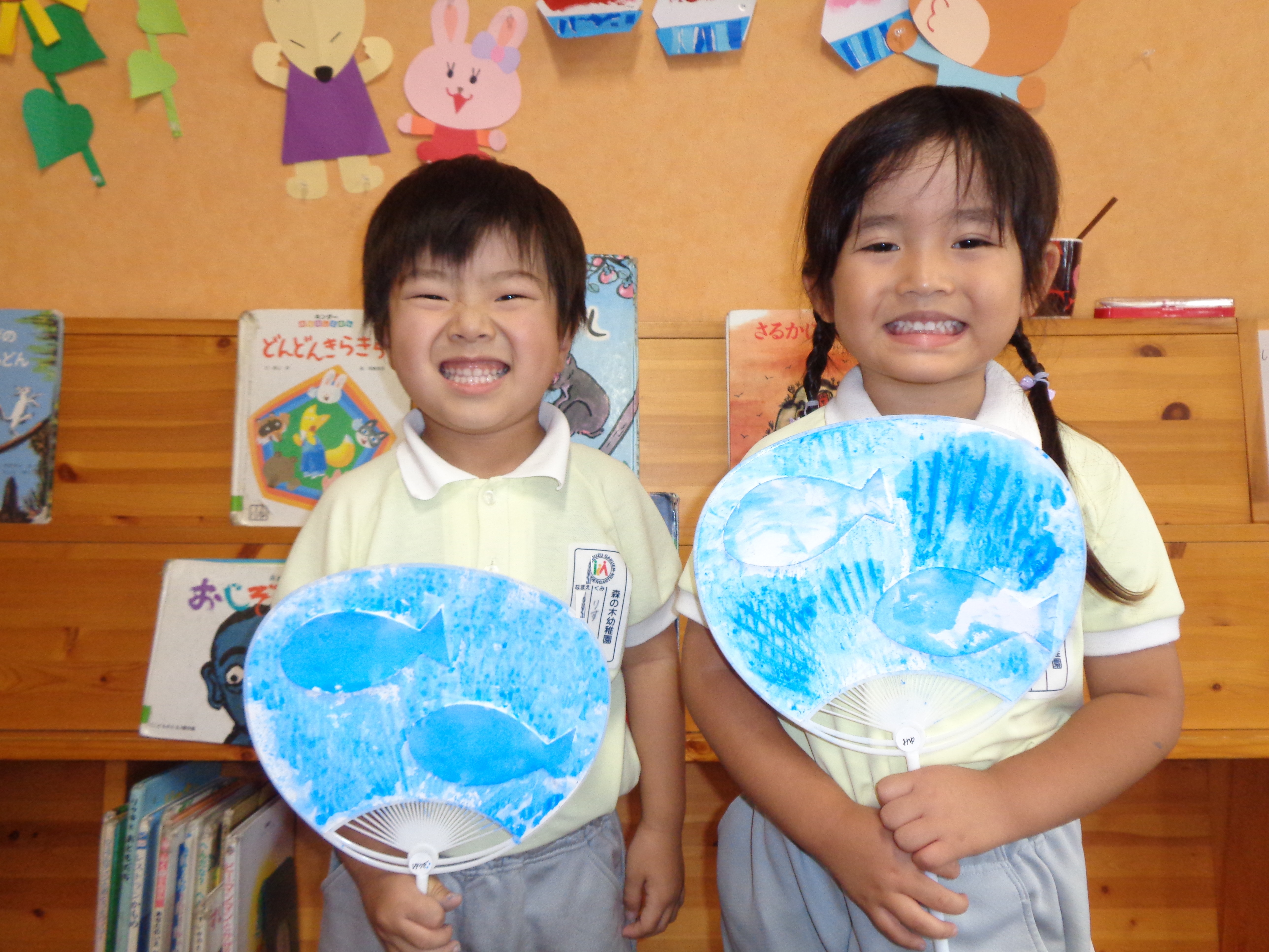 そして、年少は今日うちわを作っていました!