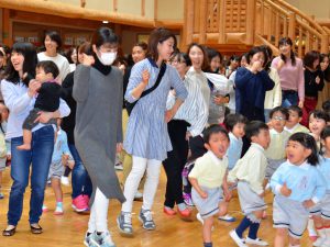 お母さん方も子ども達が踊るのを見ていたからか・・・?