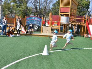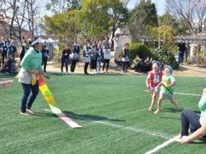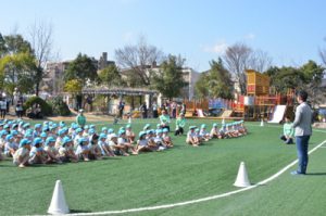 楽しそうに体操やかけっこ、リレー、歌を歌い