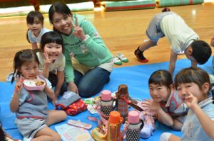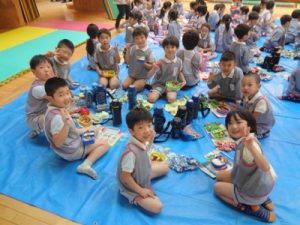 年長全員でキンダーホールで食べましたよ☆