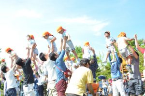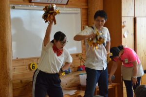見事!力を合わせ、一番に積み木を完成させたチームは…