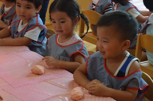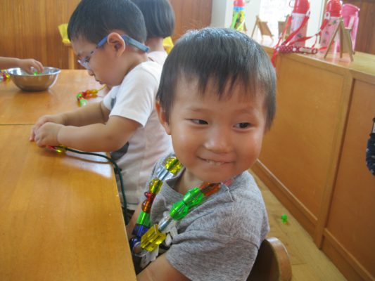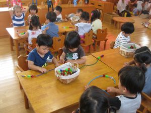 ビーズ通しと小麦粉粘土をしましたよ♪