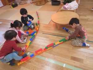 「こんなに長く繋げれた~!」や「見て見て~高くできたよ☆」