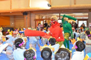 最後は園長先生が大きな豆で退治してくれました!!
