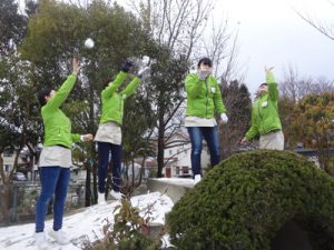 雪を丸めて投げたり雪を吹いたりしていました(^O^)