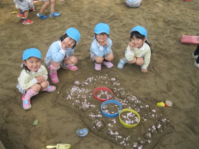 砂場では桜の花びらを散りばめたケーキが!!