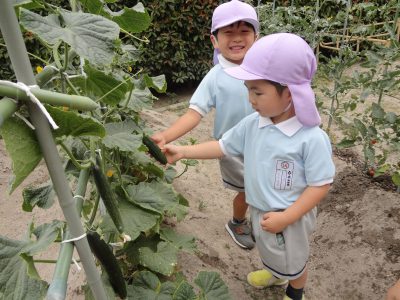 園庭では、年少が植えたキュウリが沢山出来ていました☆