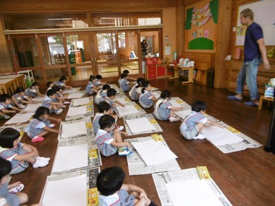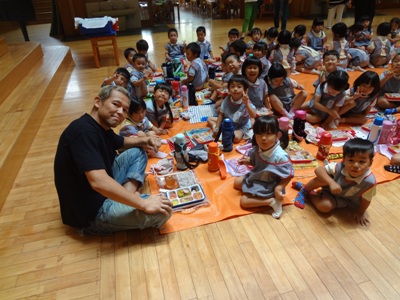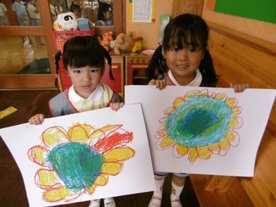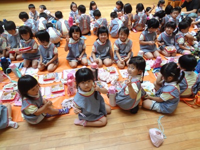 ぱんだ組とひまわり組が誕生会で当たった券を使って