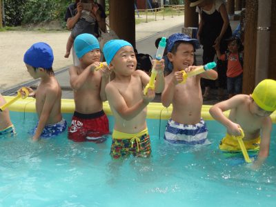 幼稚園でも年少・年中がプールに入りました(●^o^●)