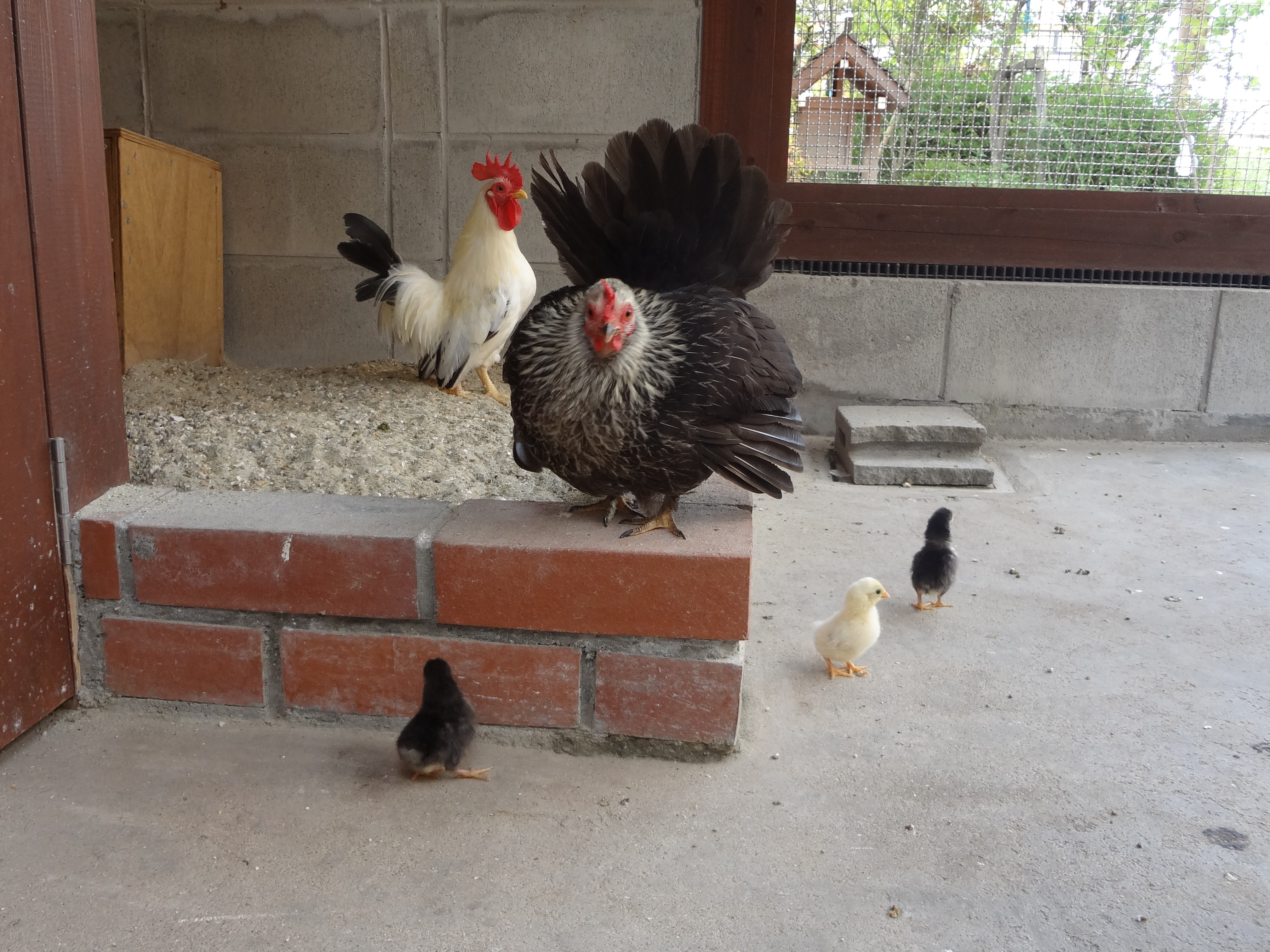 「かわいいねぇ!」「黄色と黒のひよこがいる!」と