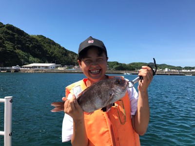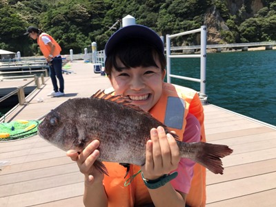 大きな鯛を釣る事が出来、とっても嬉しそうな