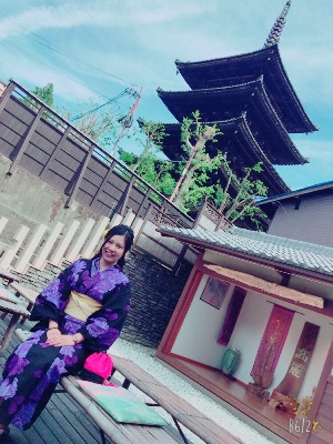お寺や京都の町並みと浴衣がマッチしていて、