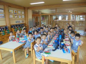 頑張った後はパートで給食を食べました!!