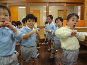 合唱では、可愛らしく振りを付けて