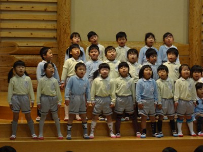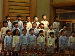 今日は誕生会で当たった「キンダーホールで歌が歌える券」を
