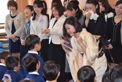 泣きながらお母さんに感謝の言葉を伝える子ども達。