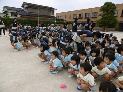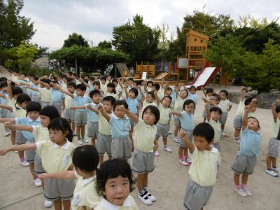 避難訓練の後はそのまま園庭で全園児体操!