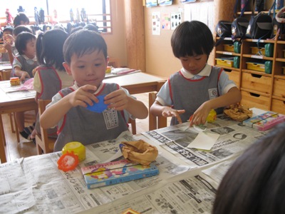 真剣な表情で食べ物の形に切っていましたよ(^^♪