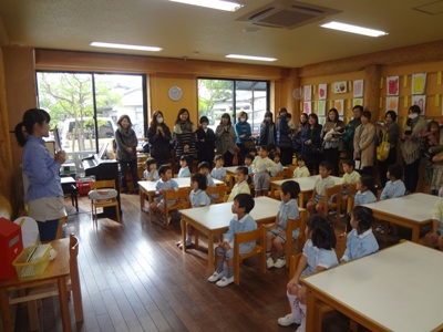 園長先生のお話を聞いたり、築嶋先生と楽しく歌を歌ったりしました。