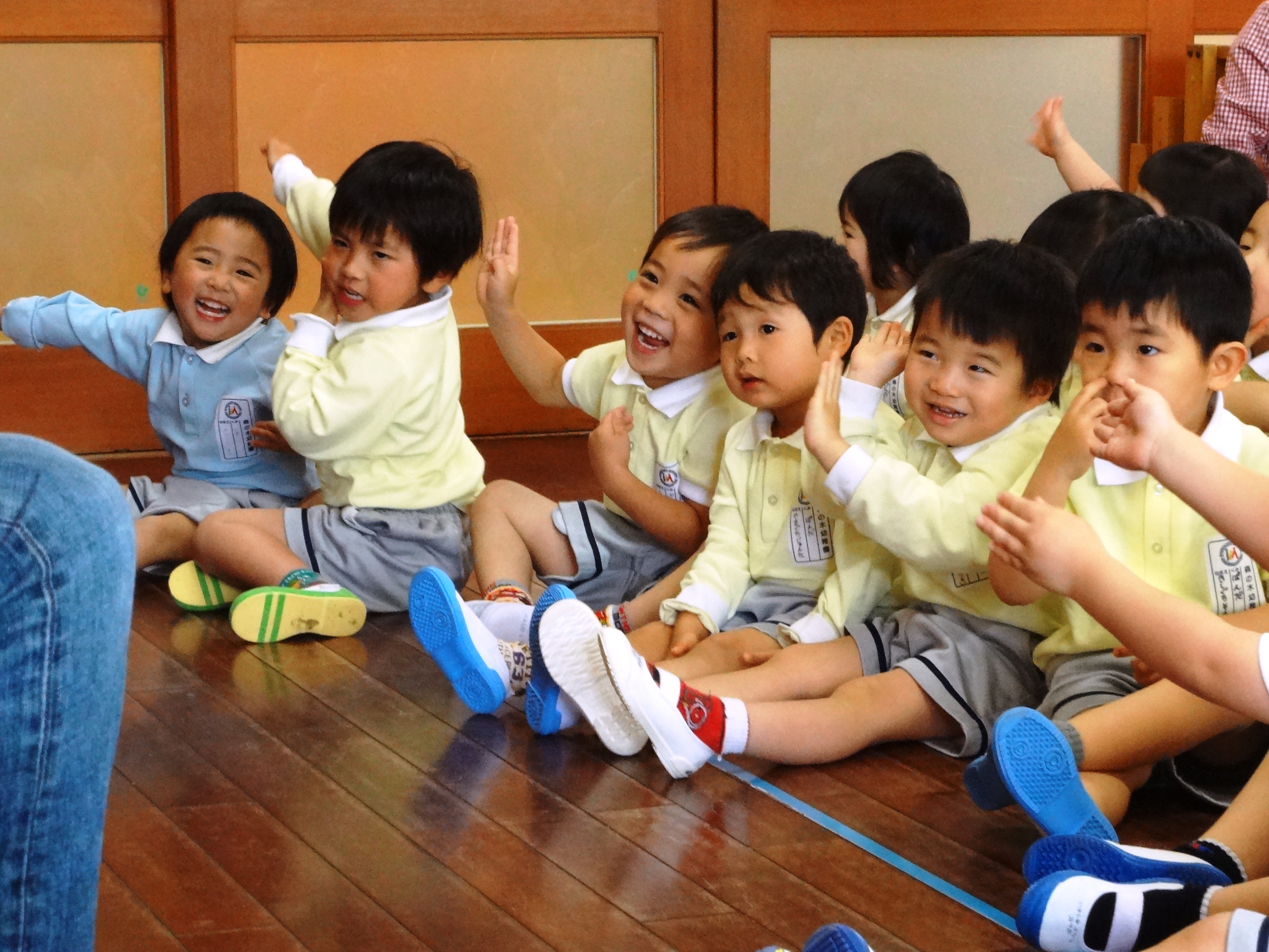 少し緊張していた子どもも、ニック先生の楽しい英語でこの通り!