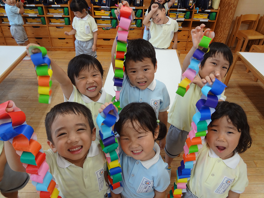 すみれ組は午後に七夕で飾る輪飾りを作りました☆