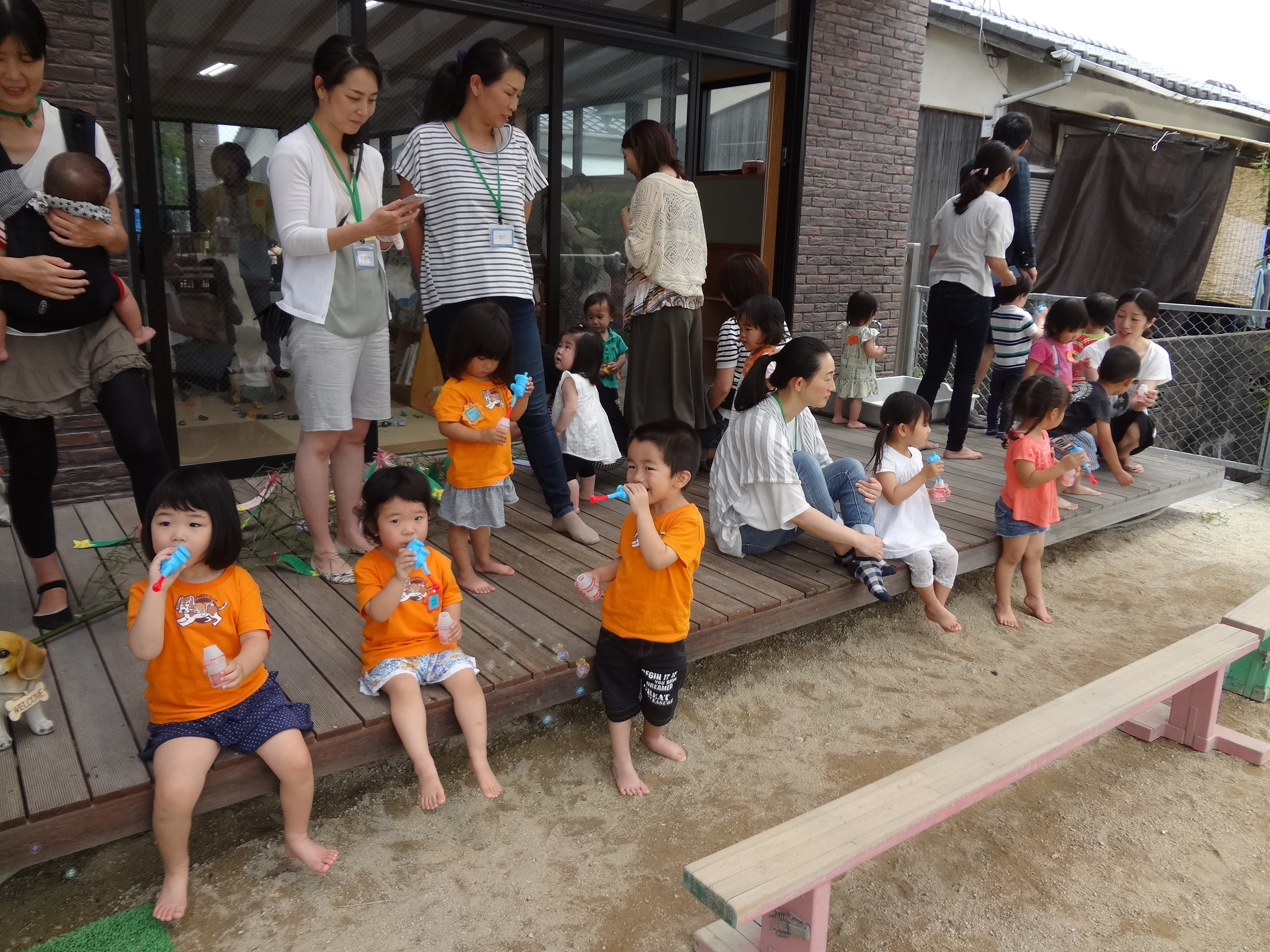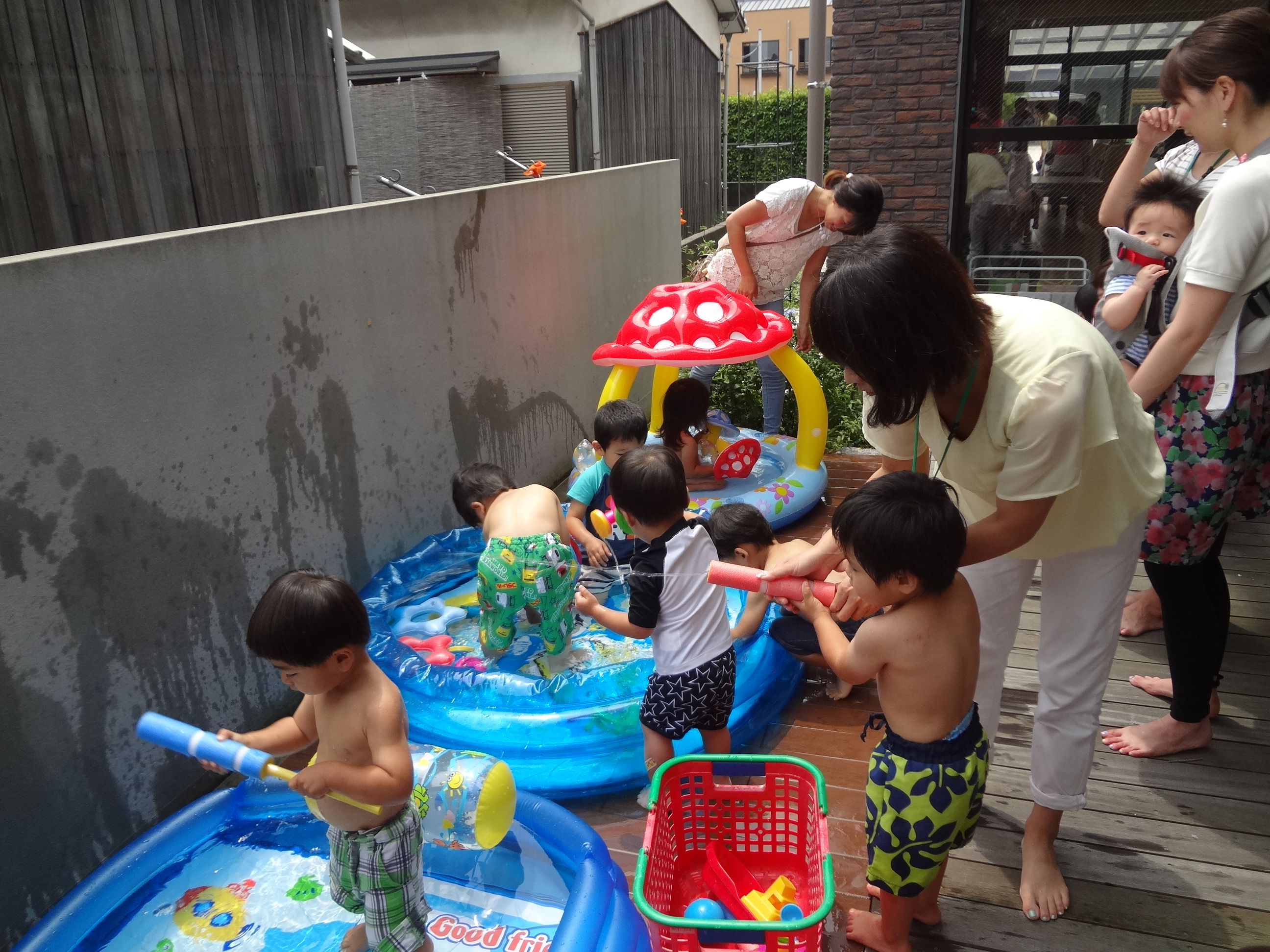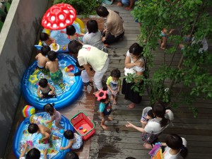 シャボン玉遊びや、プール遊びを楽しむキッズたち