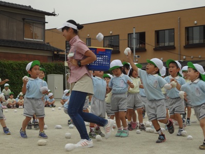 年長は両手投げで