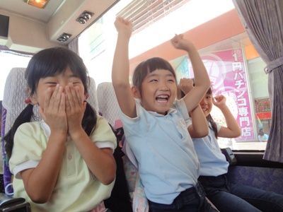 バスの中では、虫の鳴き声クイズや歌を歌って楽しく過ごしました