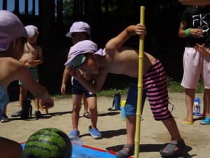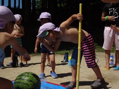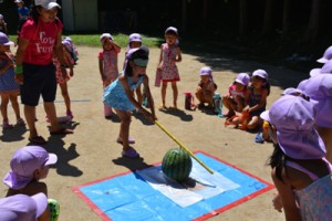 どんなに子ども達が棒で当ててもなかなか割れませんでした