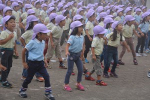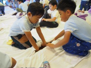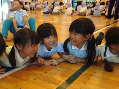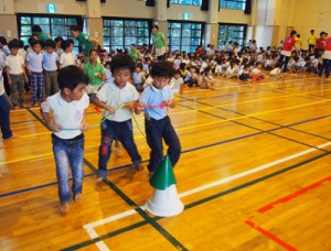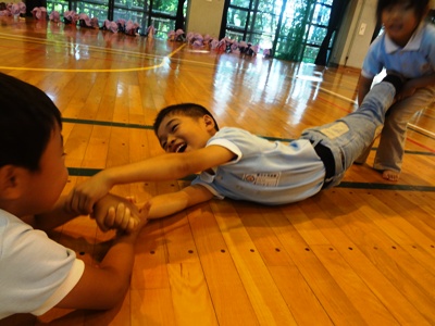 三園で、ブリッジ前回転や逆立ち歩き等のチャンピオンを決めたり
