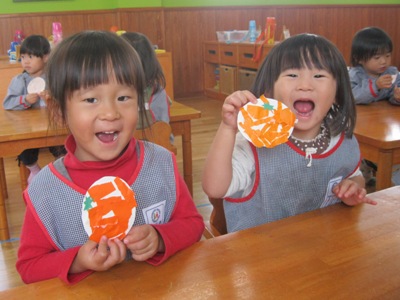 先日は、その中のみかんの製作をしました(*^_^*)