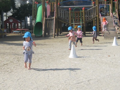また、かけっこでは、大きなトラックを
