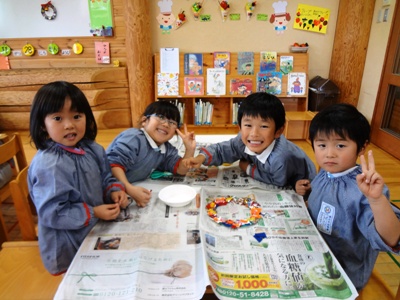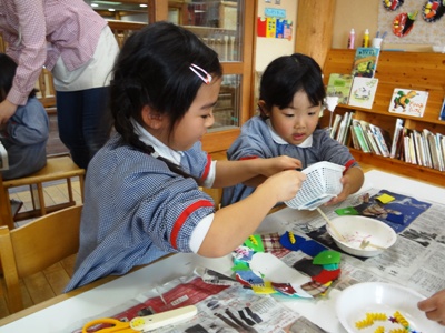 今回作った飾りは12月からキンダーホールに飾ります(*^_^*)