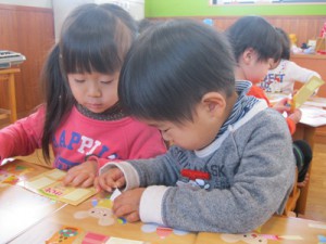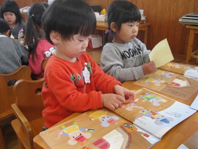 「ここ貼ったよ!」「この帽子持っとるー!」と