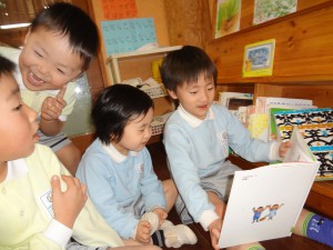 年長が年少に絵本を読んであげる姿も見られましたよ♪