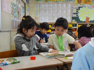 絵本を読んだり